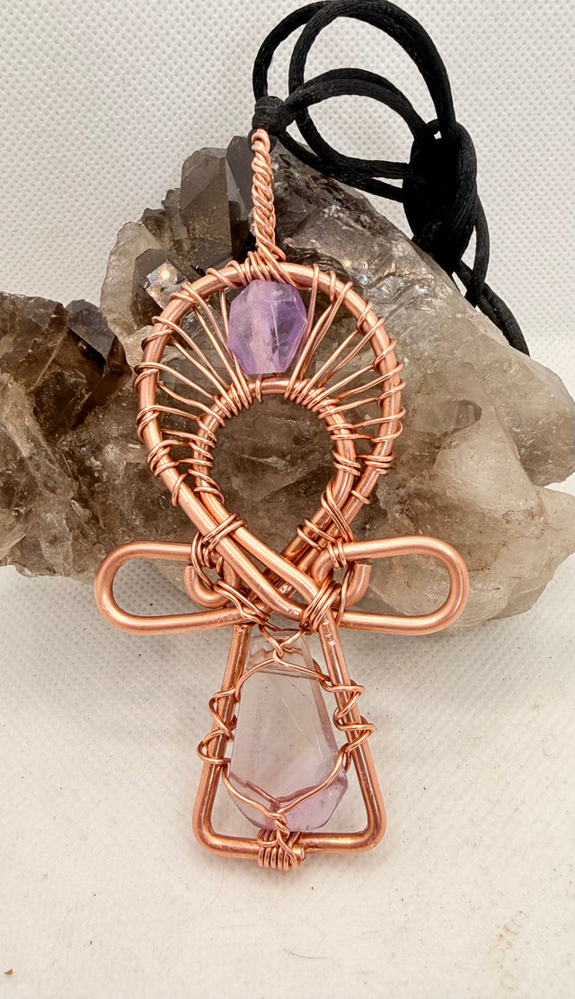 Amethyst Copper Ankh Pendant Wirewrapped with Copper Chain