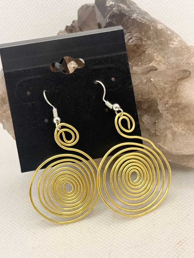 Brass Spiral Handmade Earrings w/sterling Plated Hooks