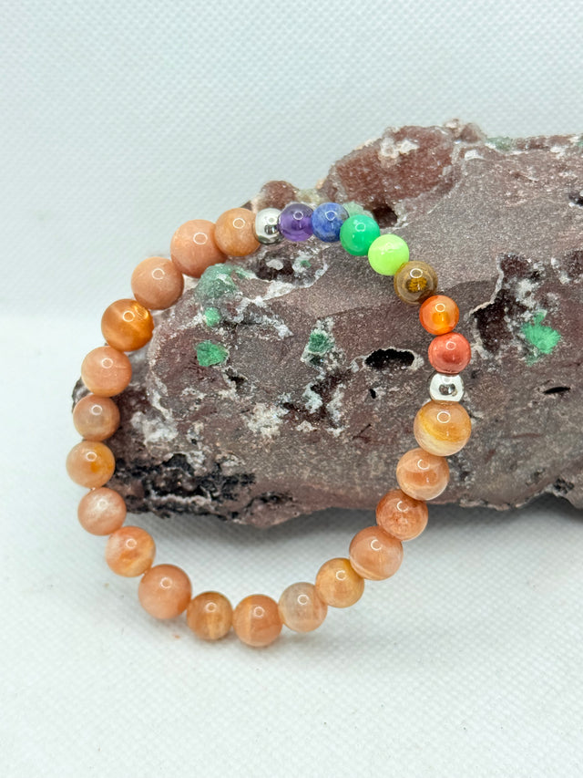 Peach Moonstone with Chakra Beads Stretchy Bracelet