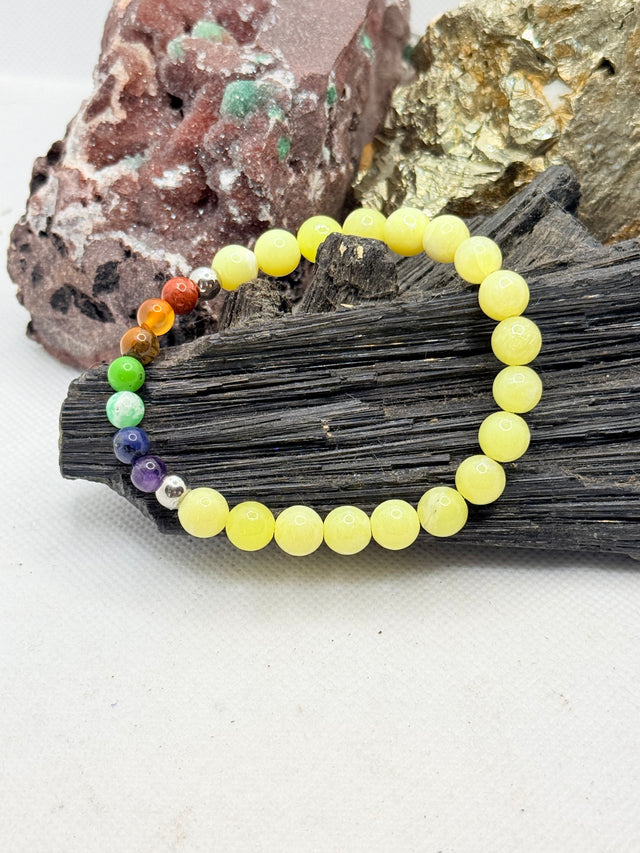 Yellow Serpentine with Chakra Beads Stretchy Bracelet