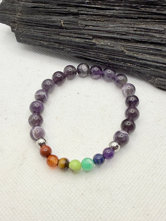 Cracked Quartz with Chakra Beads Stretchy Bracelet