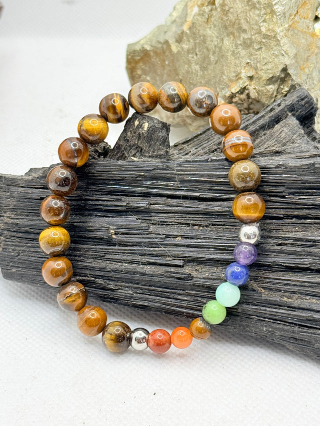 Tigers Eye with Chakra Beads Stretchy Bracelet