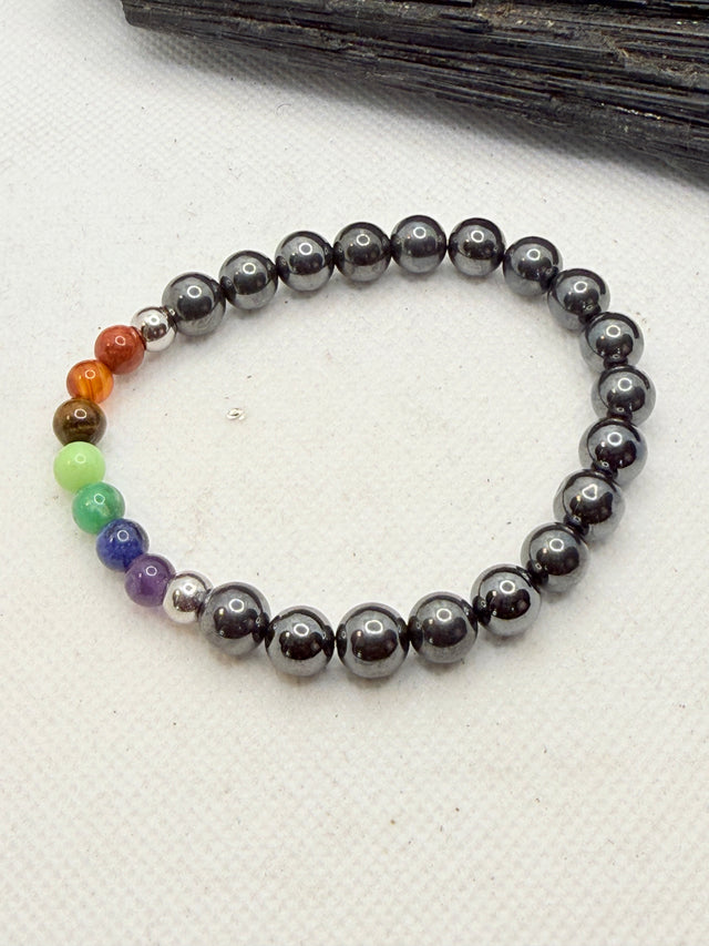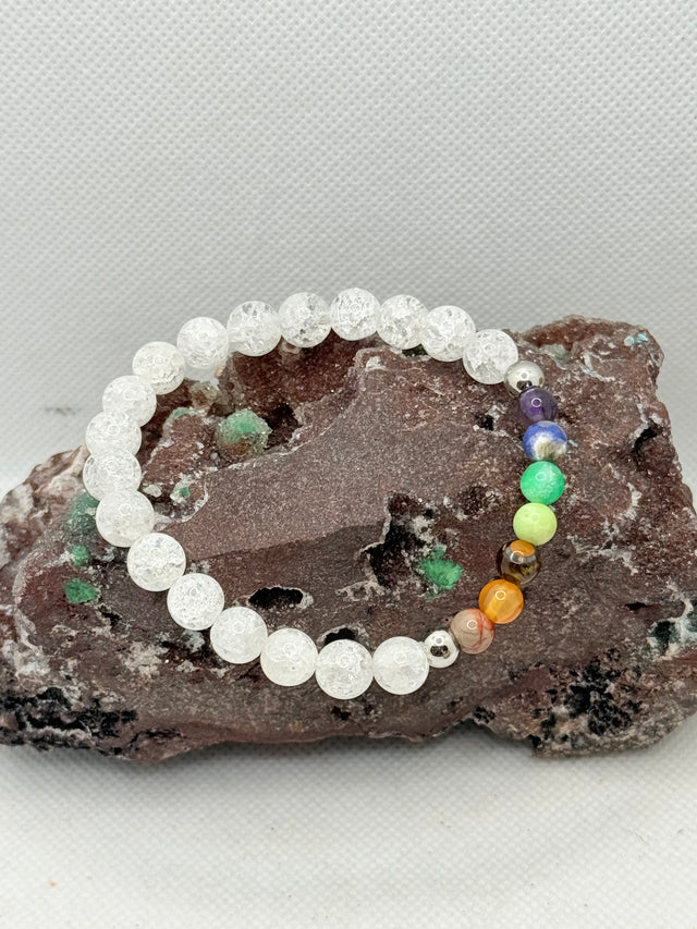 Cracked Quartz with Chakra Beads Stretchy Bracelet