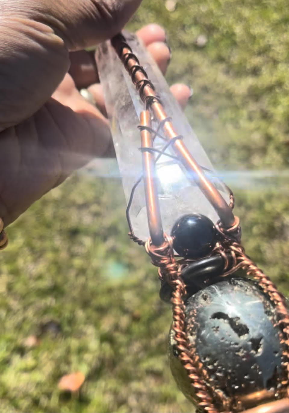 Quartz Crystal with Moroccan Herkimer Diamond Handheld Copper Ankh