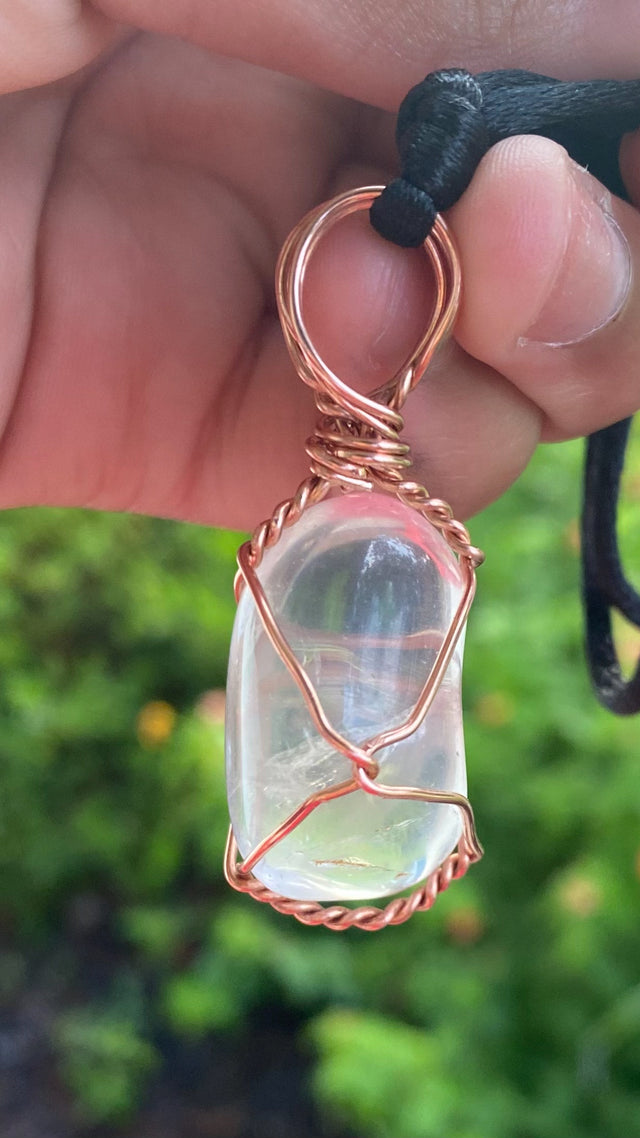 Clear Crystal Tumble Stone Wirewrapped Crystal Copper Pendant