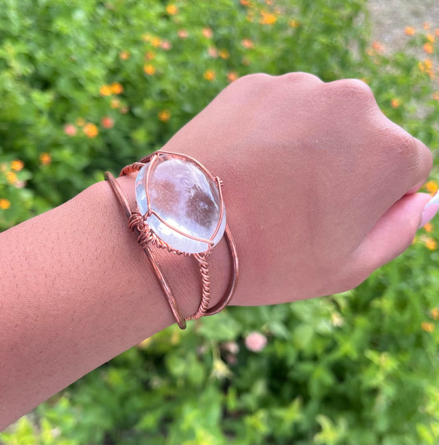 Clear Crystal Quartz Gallet Wirewrapped Copper Bracelet