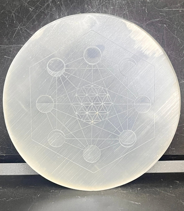 RARE Selenite 5.5 inch Charging Plate Flower of Life Lunar Cycle