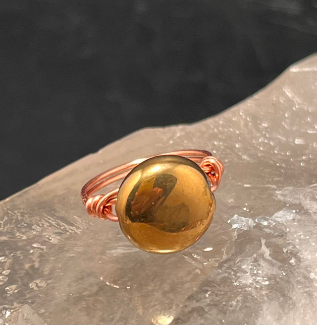 Moroccan Selenite Crystal Copper Wirewrapped Ring by Infinite Treasures,LLC