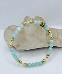 This Amazonite bracelet has 18kt gold plated beads and authentic Swarovski Crystals that add a touch of elegance!