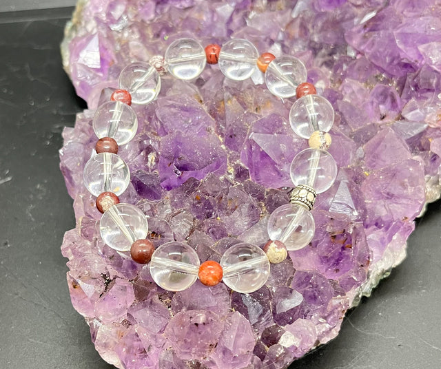 Clear Quartz 12mm and Gemstones Stretchy Bracelet