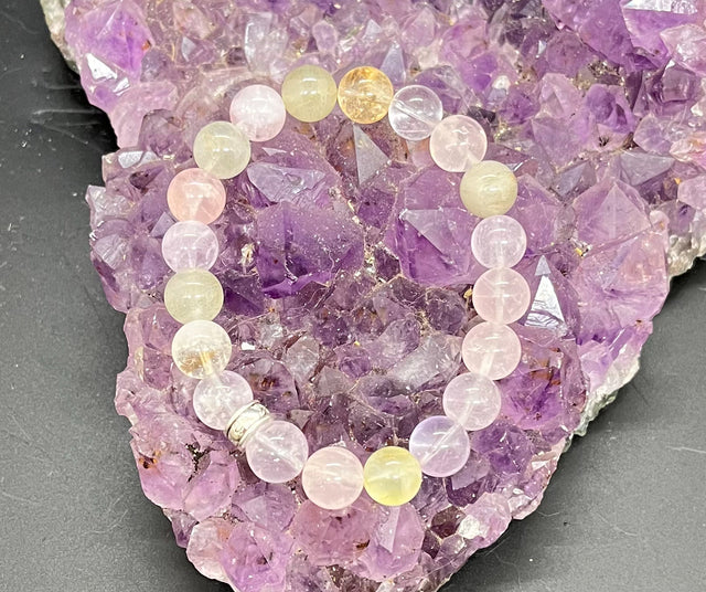 Rose Quartz, Amethyst, Citrine and Prehnite 10mm Stretchy Bracelet