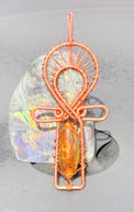 Mexican Amber from Chiapas, Mexico, Insect Inclusion, Copper Ankh Wirewrapped Wearable Pendant