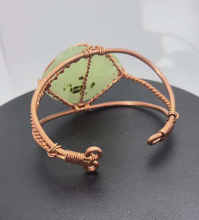 Prehnite w/Epidote Inclusions Copper Wirewrapped Bracelet